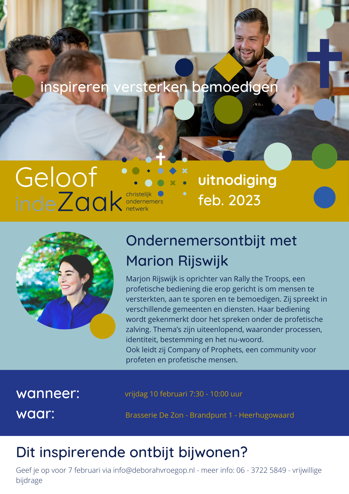 Volgende week komen we weer bij elkaar om te netwerken, elkaar te versterken, inspireren en te bemoedigen. Marjon Rijswijk spreekt. Zorg dat je erbij bent!