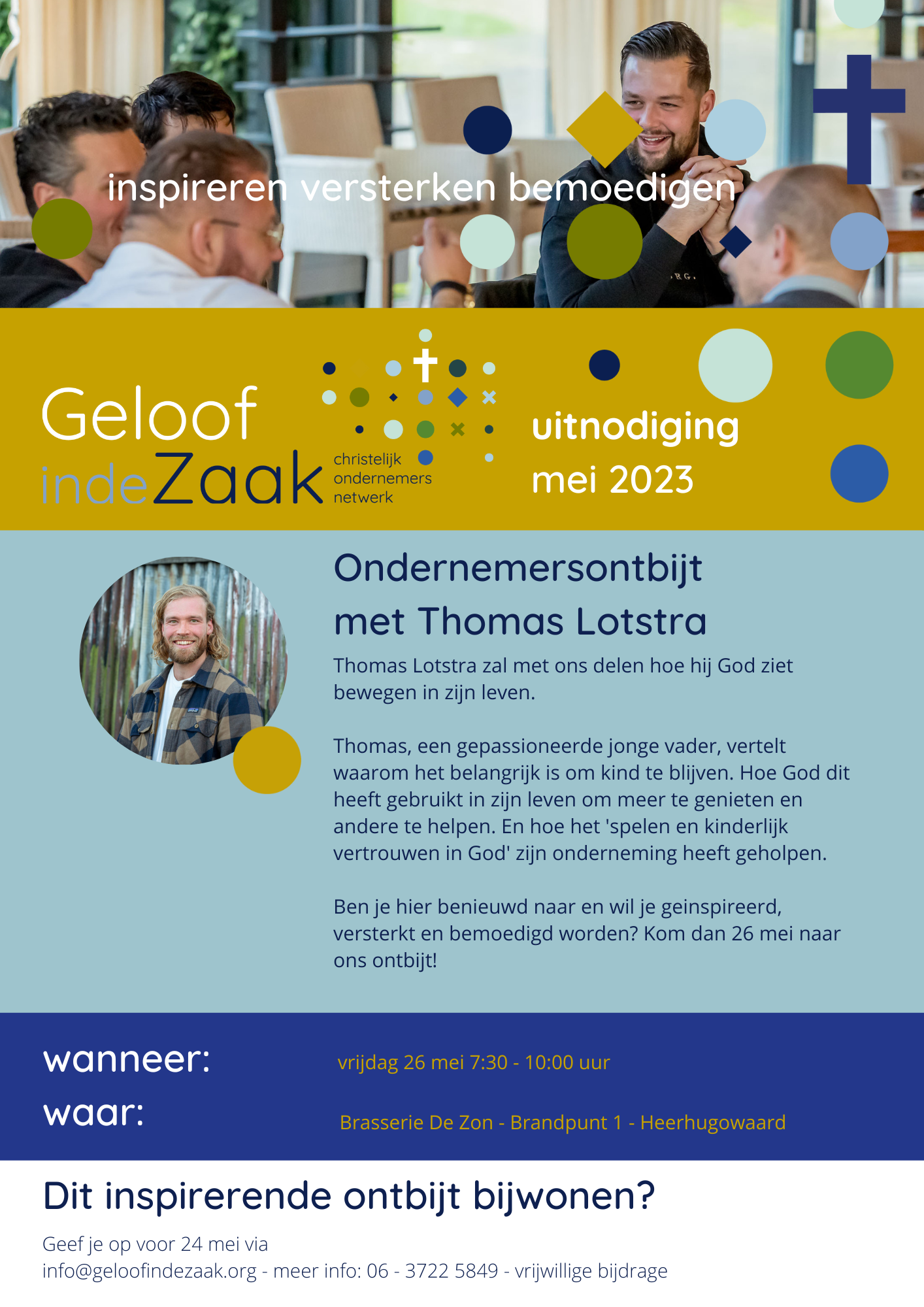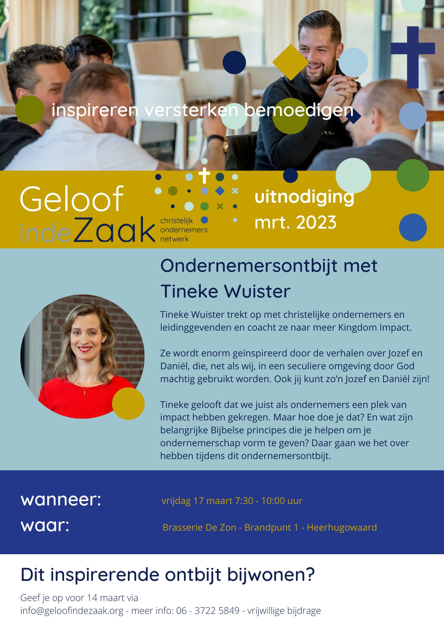 Graag nodigen we je uit voor ons volgend ontbijt in maart met Tineke Wuister. Tineke Wuister trekt op met christelijke ondernemers en leidinggevenden en coacht ze naar meer Kingdom Impact. Ze wordt enorm geïnspireerd door de verhalen over Jozef en Daniël, die, net als wij, in een seculiere omgeving door God machtig gebruikt worden. Ook […]